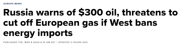 In the meantime, the nuclear economic option has now been deployed - a ban on Russian oil and gas. Today the White House announced the U.S. ban and Europe announced they will seek to ban a majority of Russia natural gas over the course of 2022.